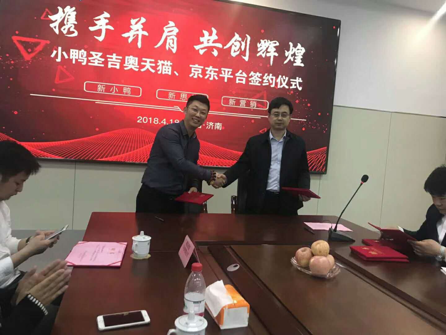热烈祝贺青岛易亚网络公司与山东小鸭集团达成战略合作协议,新起点,新征程!